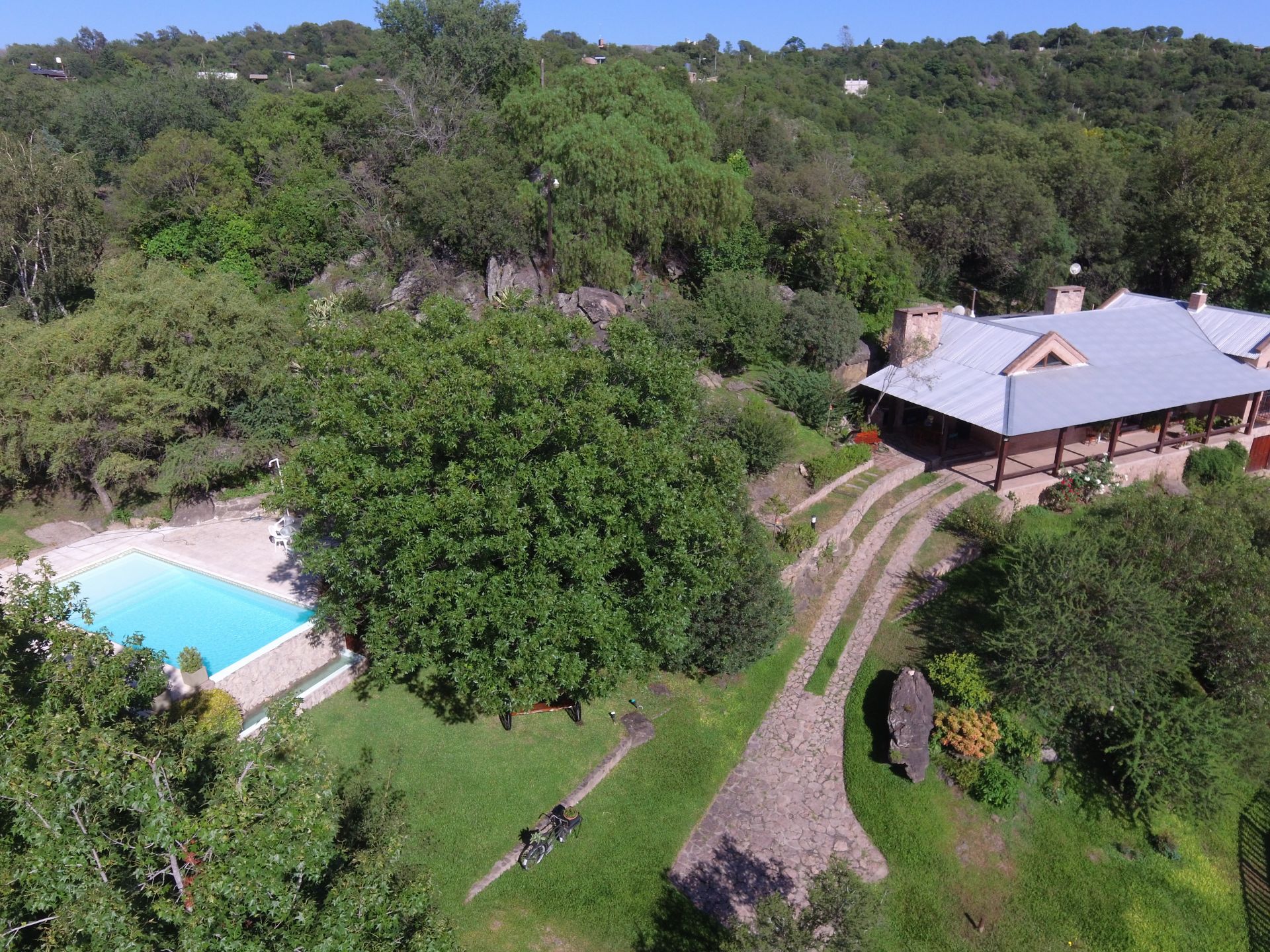 Chalet de categoría en venta con pileta ubicado a 800 metros del río, en la ciudad de Cuesta Blanca, Córdoba; a 30 minutos del centro de Villa Carlos Paz.-